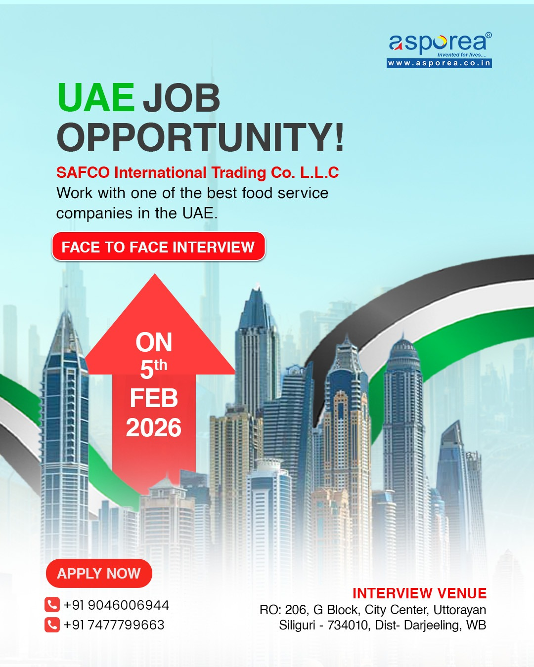 | Position | Gender | No's | Salary (AED) | Nationality |